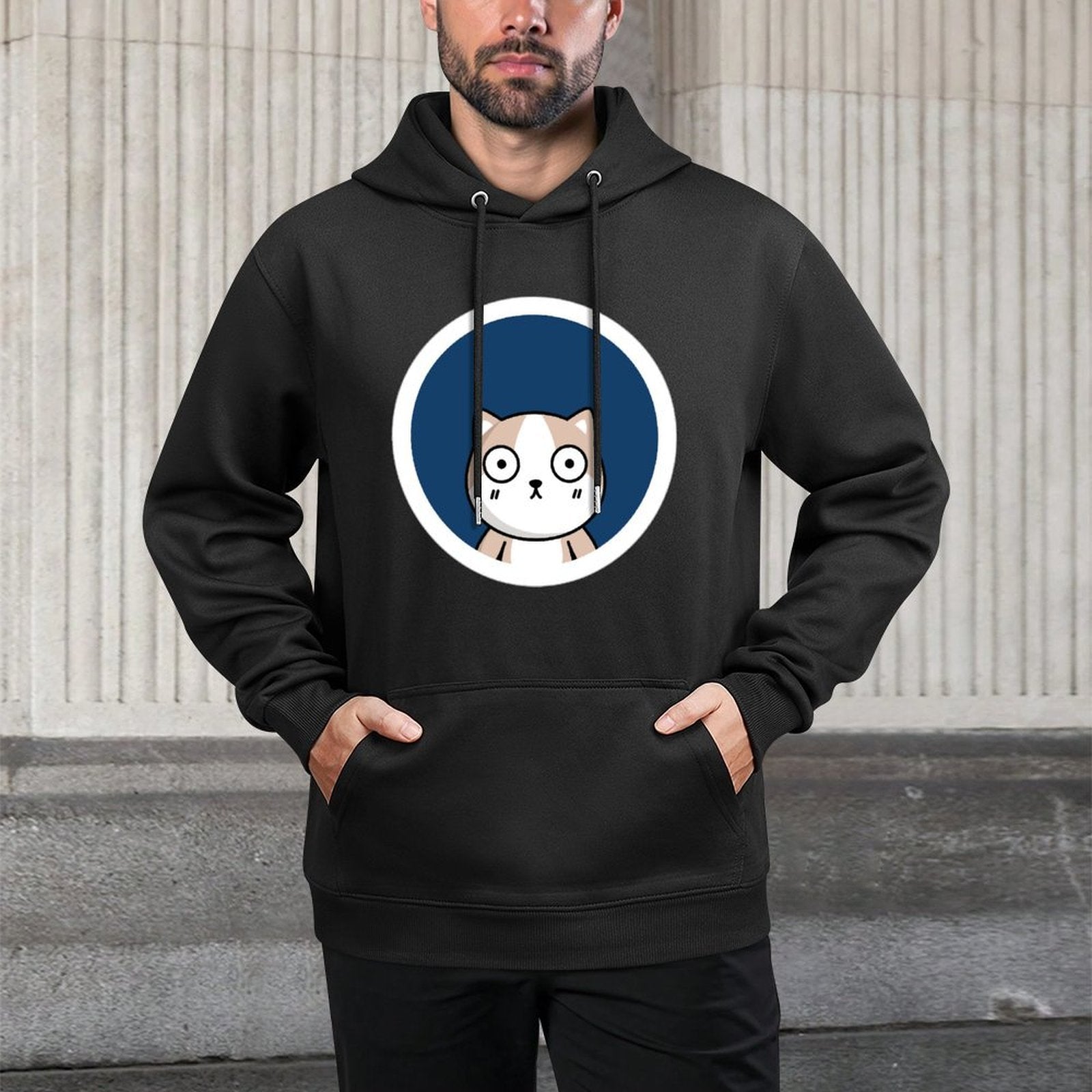 [Features]This cotton hooded pocket sweatshirt is made from selected polyester fabric. The classic hooded design is stylish and versatile, providing effective protection from cold weather and adding a touch of casual street style. The kangaroo pocket provides convenient storage for small items. It's a great choice worn alone or under a jacket.