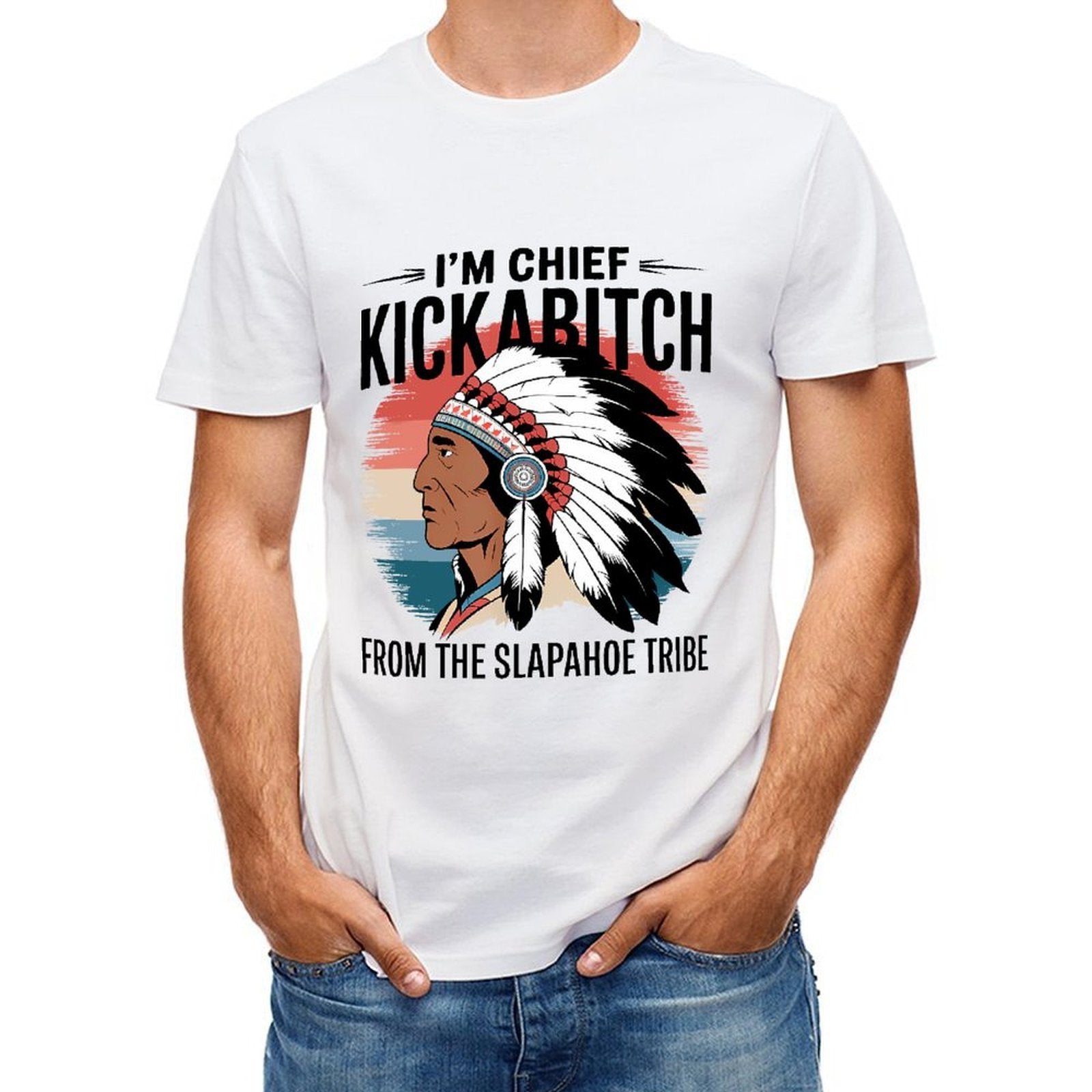 Inkmay Casual Cotton T-shirt Native American Headdress With Feathers Unisex T-shirt