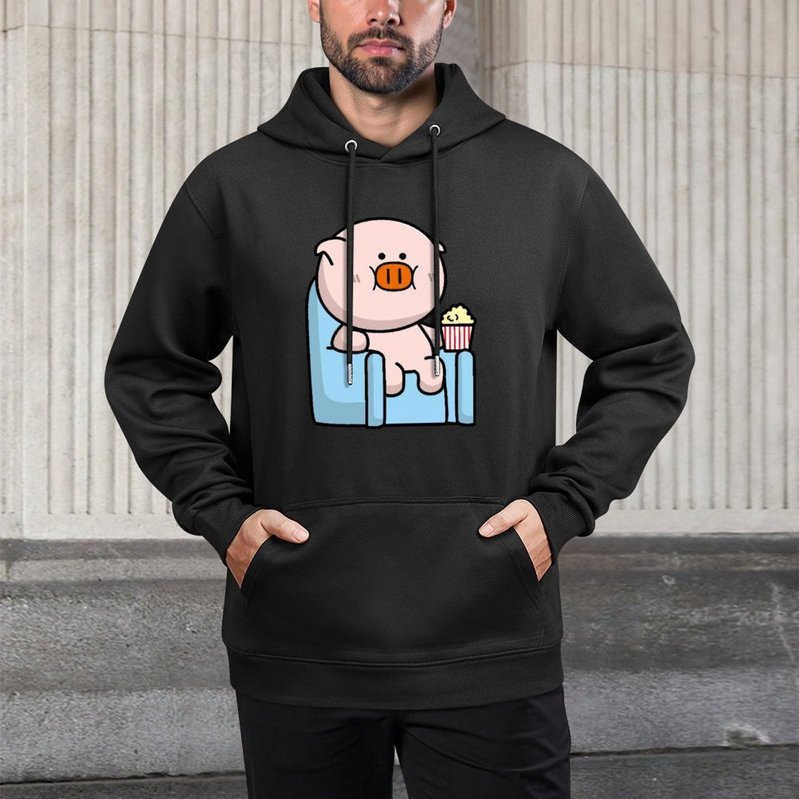This cotton hooded pocket sweatshirt is made from selected polyester fabric. The classic hooded design is stylish and versatile, providing effective protection from cold weather and adding a touch of casual street style. The kangaroo pocket provides convenient storage for small items. It's a great choice worn alone or under a jacket.