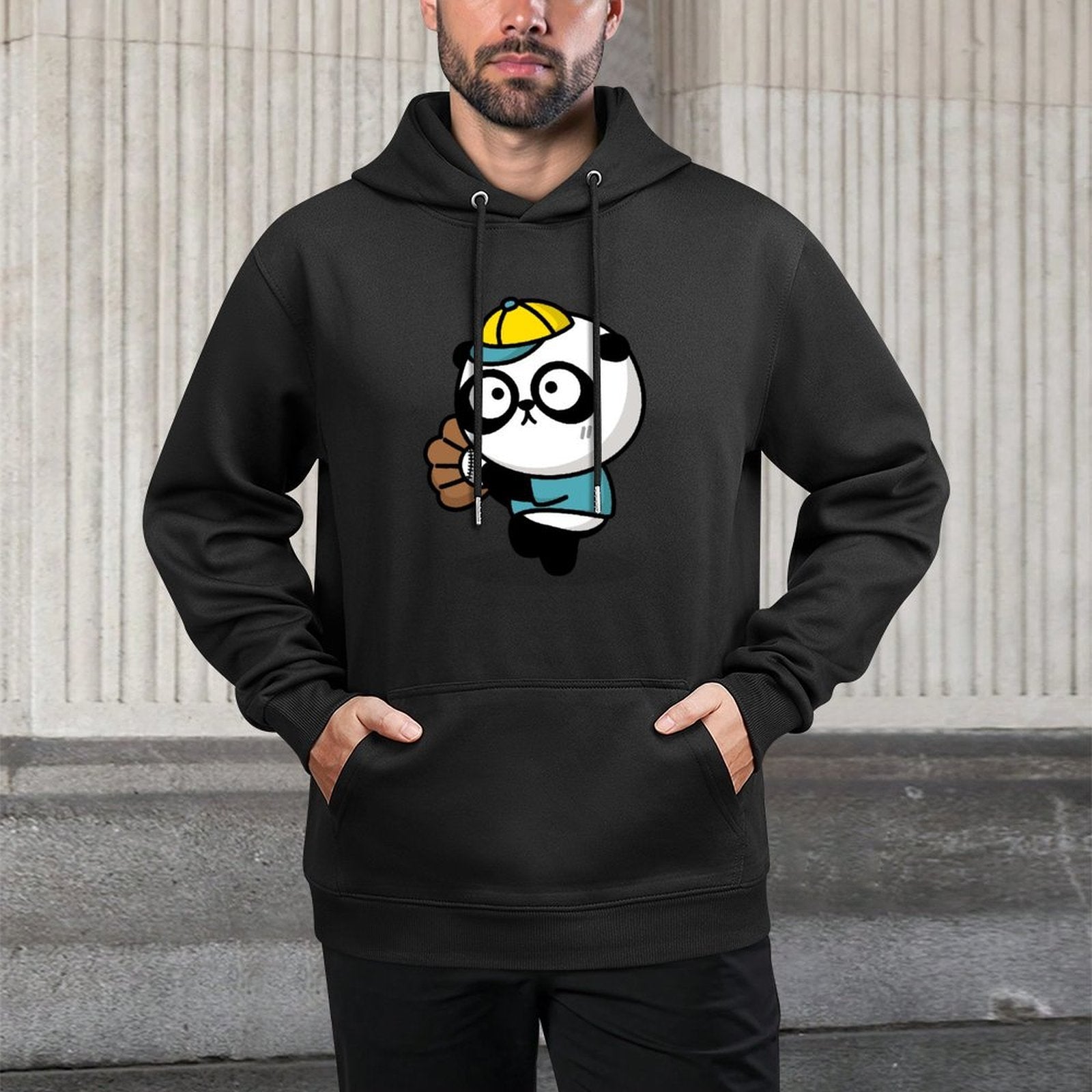 This cotton hooded pocket sweatshirt is made from selected polyester fabric. The classic hooded design is stylish and versatile, providing effective protection from cold weather and adding a touch of casual street style. The kangaroo pocket provides convenient storage for small items. It's a great choice worn alone or under a jacket.