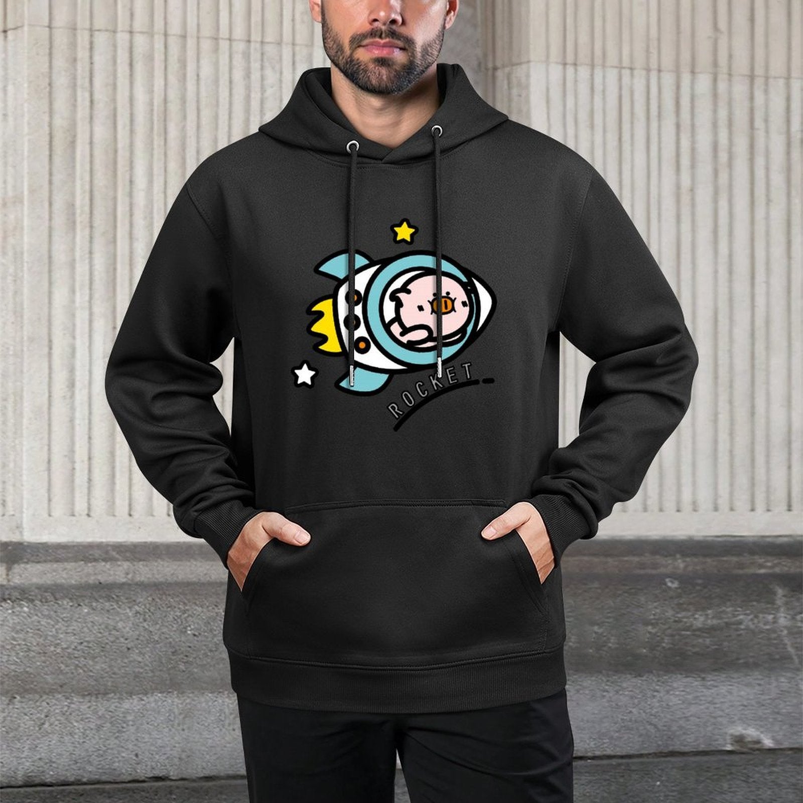 [Features]This cotton hooded pocket sweatshirt is made from selected polyester fabric. The classic hooded design is stylish and versatile, providing effective protection from cold weather and adding a touch of casual street style. The kangaroo pocket provides convenient storage for small items. It's a great choice worn alone or under a jacket.